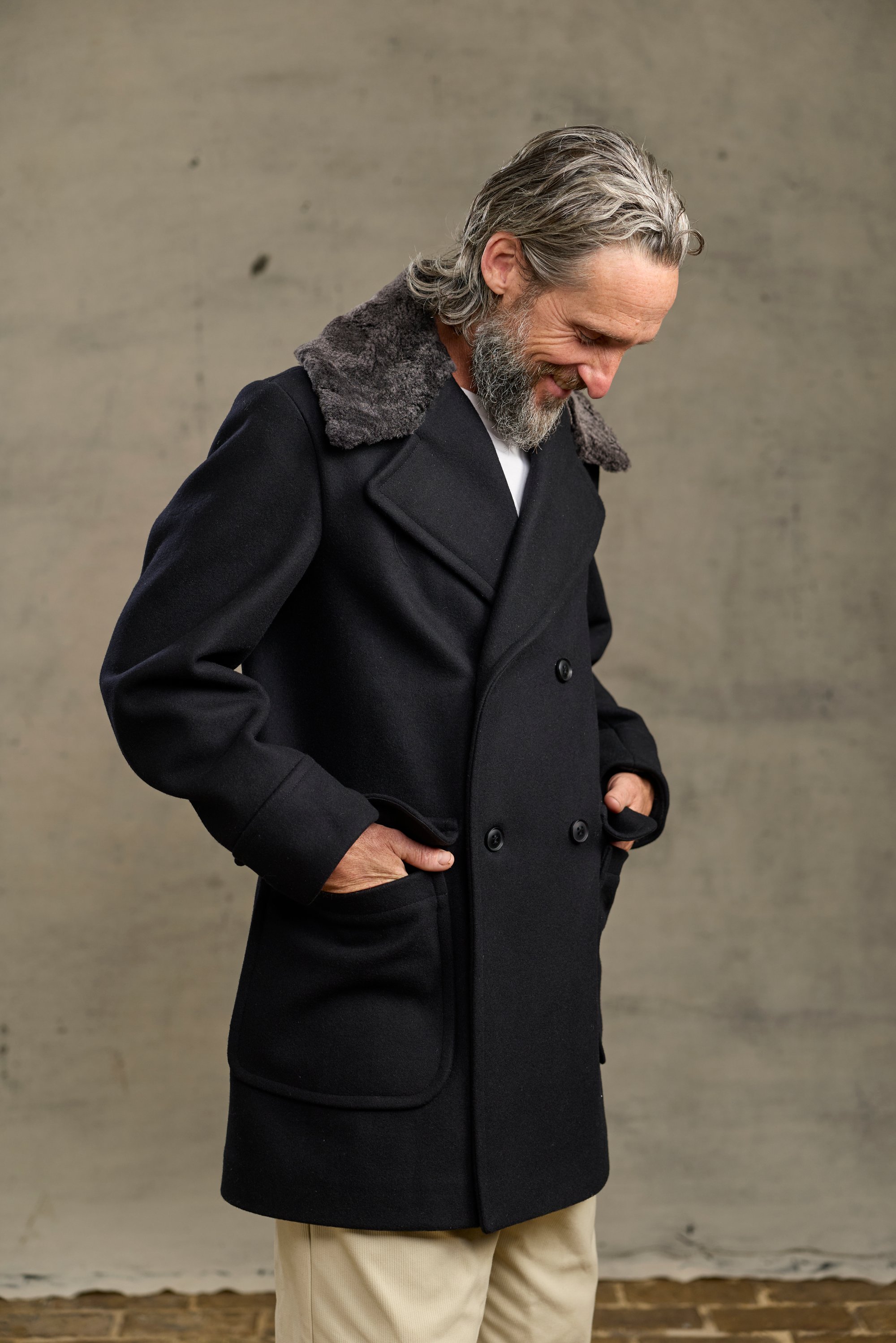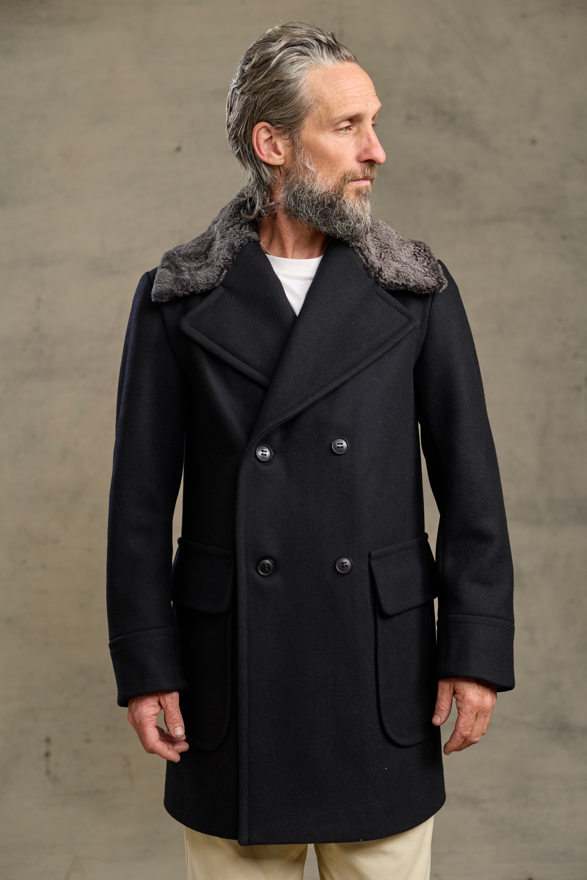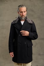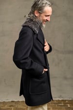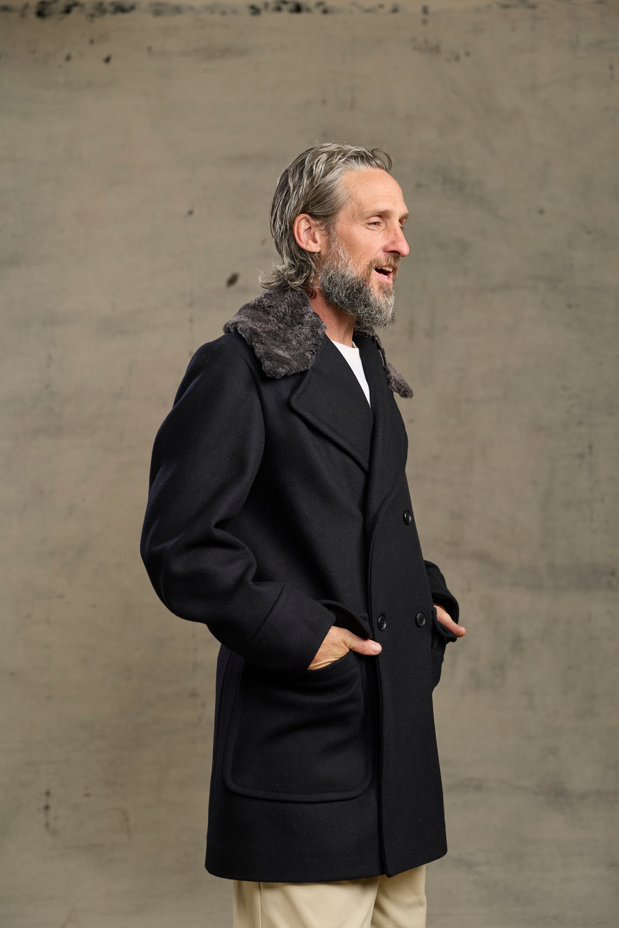Made in RICH Black Cashmere . The Fur is Italian grey fur collar