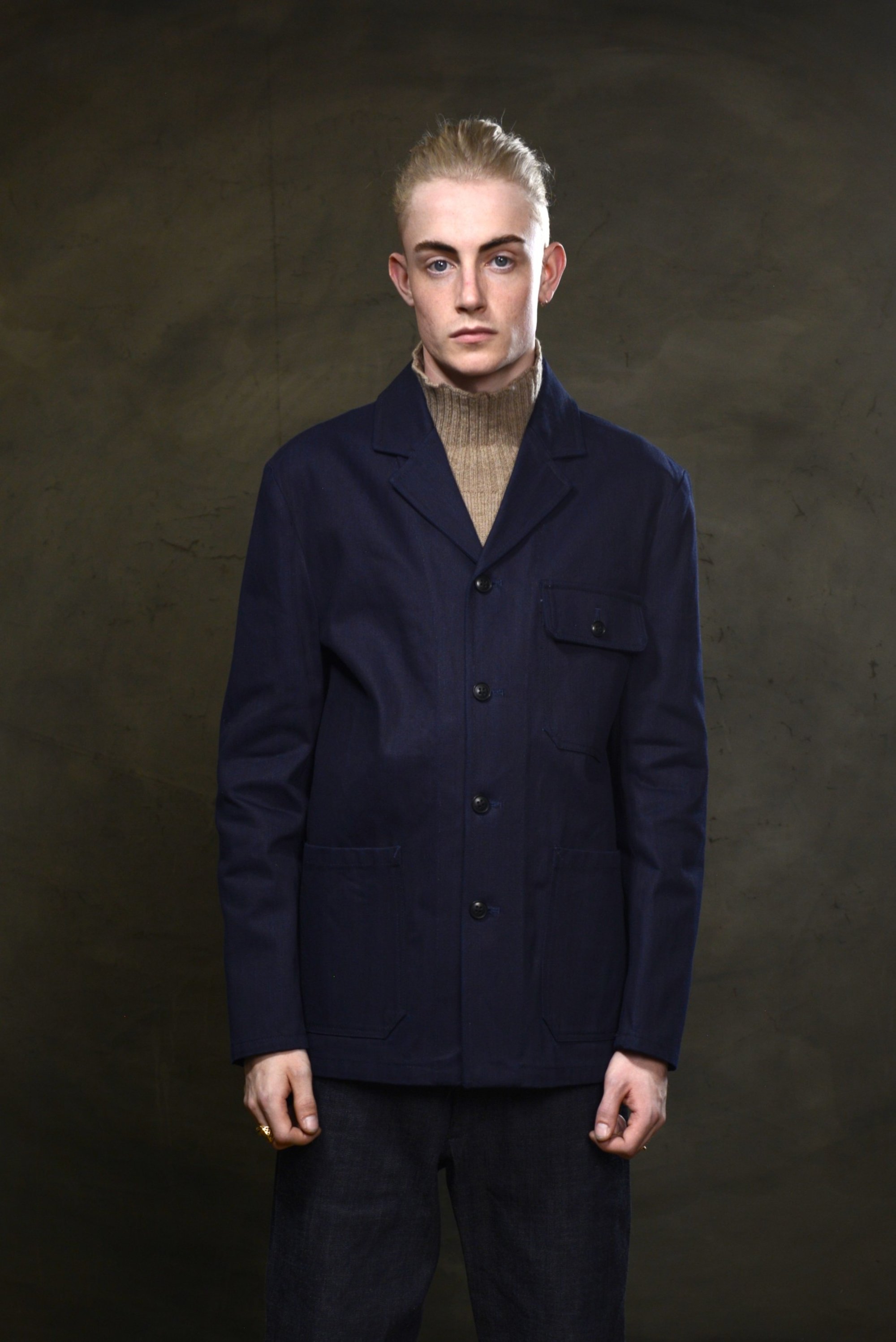 Inspired on a French Workwear jacket. There has been a great deal of work to improve the fit and shape of the body and sleeves. We now have a beautiful half lined Work wear jacket ! We have added a top patch pocket and flap.