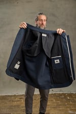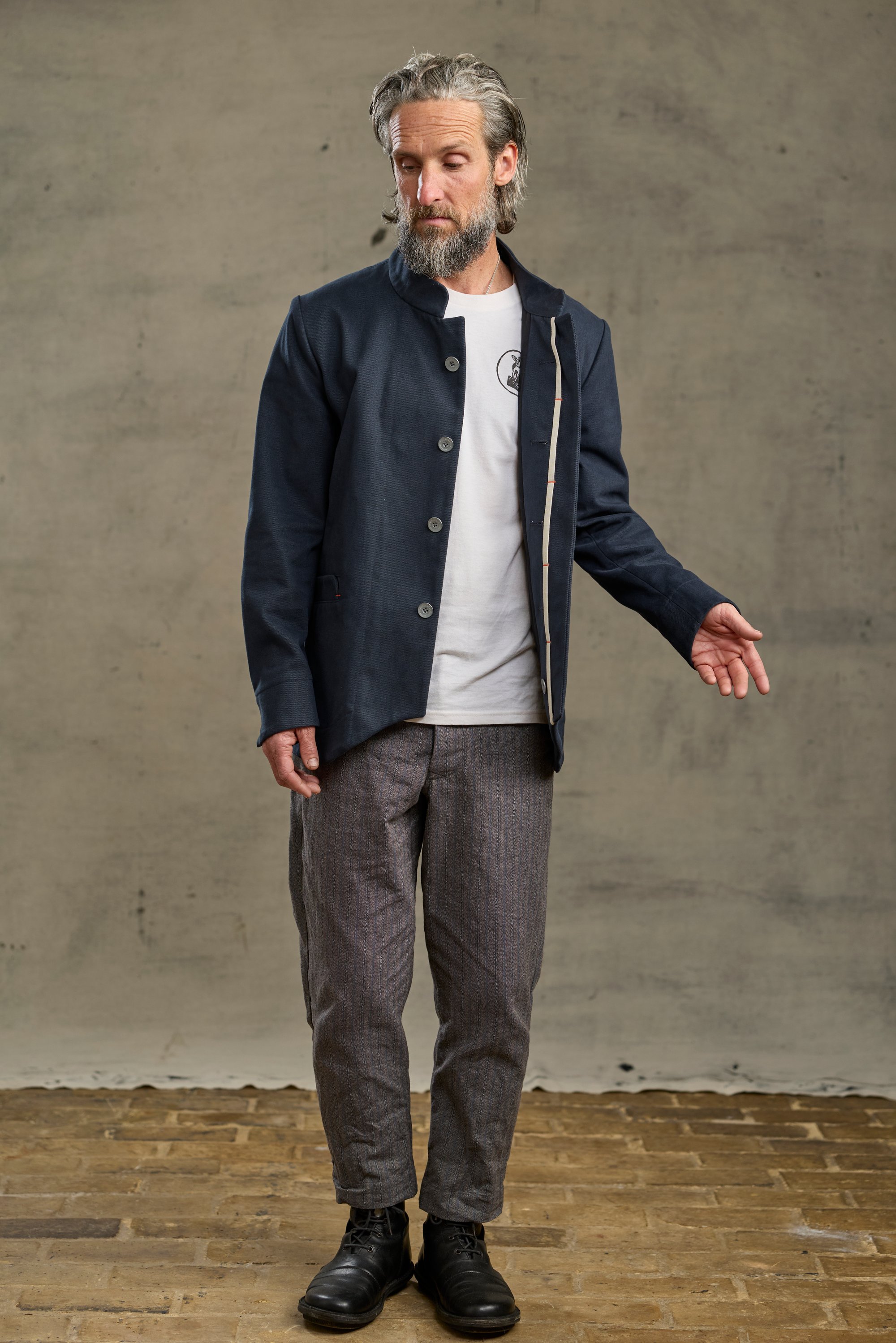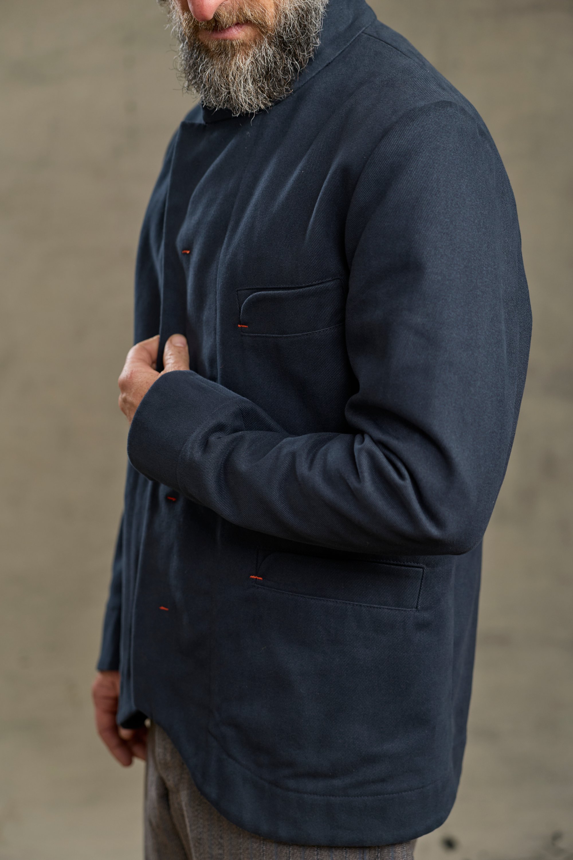 Cloth - Made in Keats Navy and Black Thick heavy woven 400 g twill, intended for hardwearing but with a sueded surface for a soft supple appearance. Twill is a type of textile weave with a pattern of diagonal parallel ribs. Because of this structure, twill generally drapes well and the garments falls elegant and smooth.