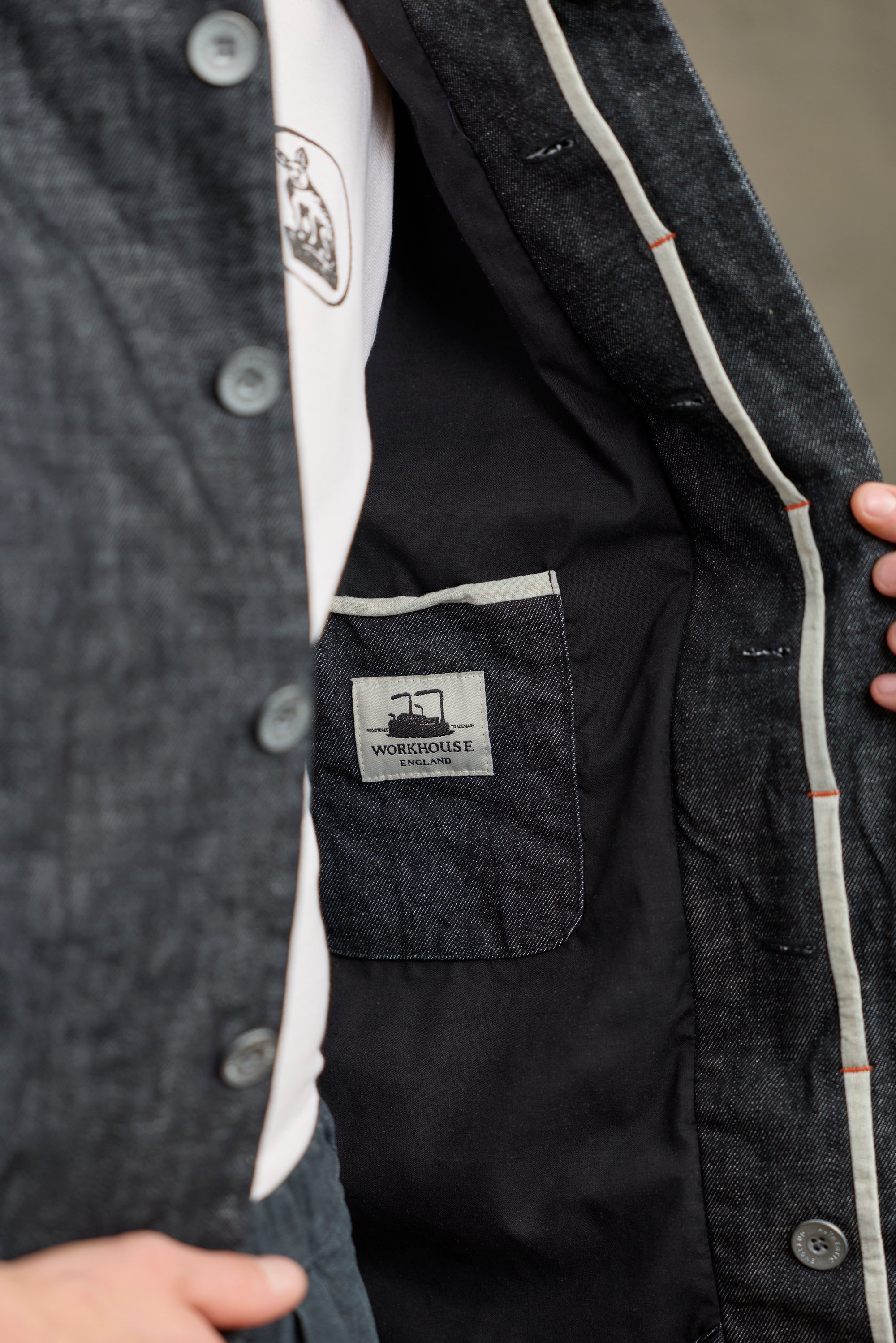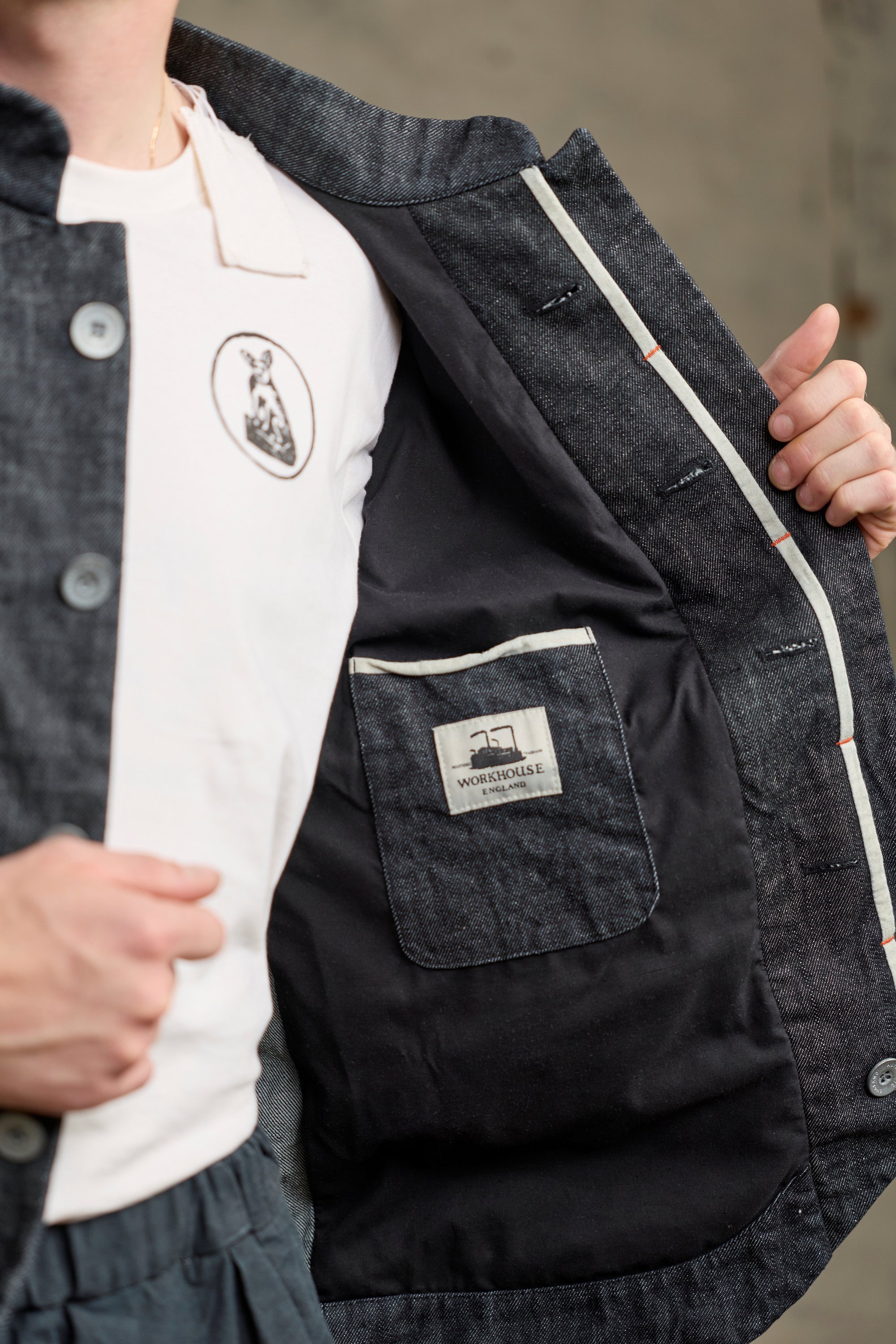 remade in Black Denim 400gsms. It has been carefully chosen for its feel, weight and for the way it hangs. It makes the ultimate WORKWEAR Garment and will only get better with age. It's perfect casual Jacket from all year round