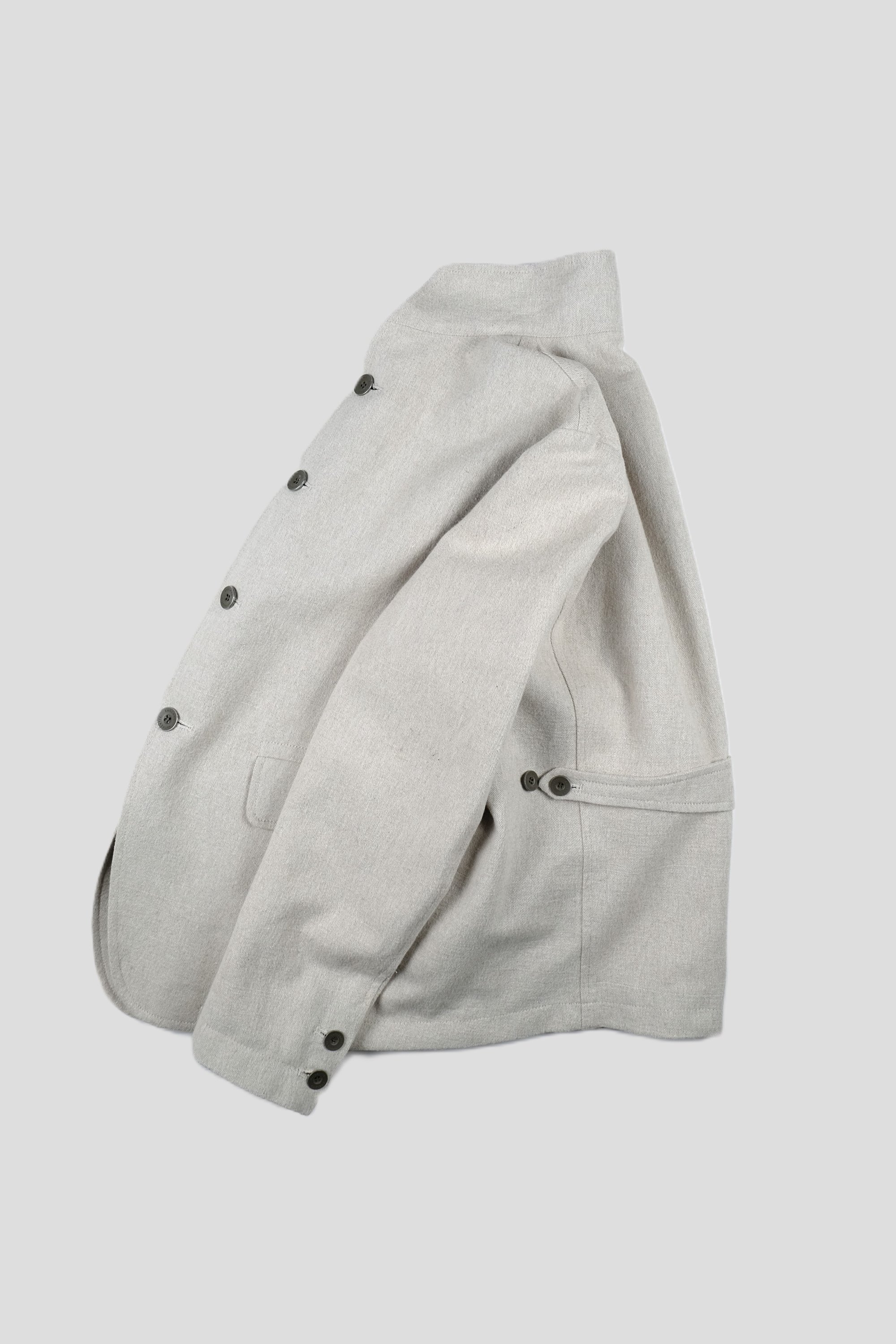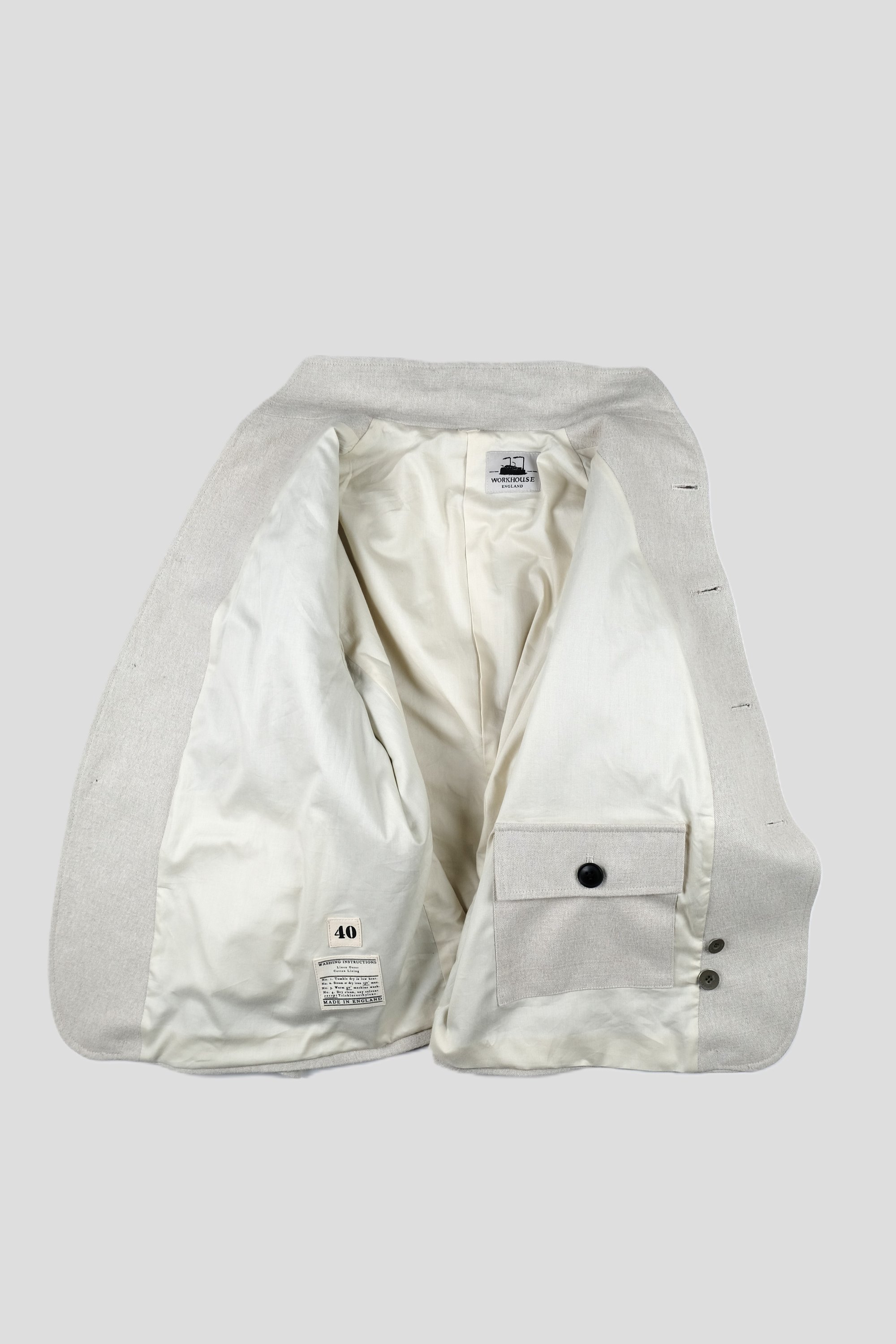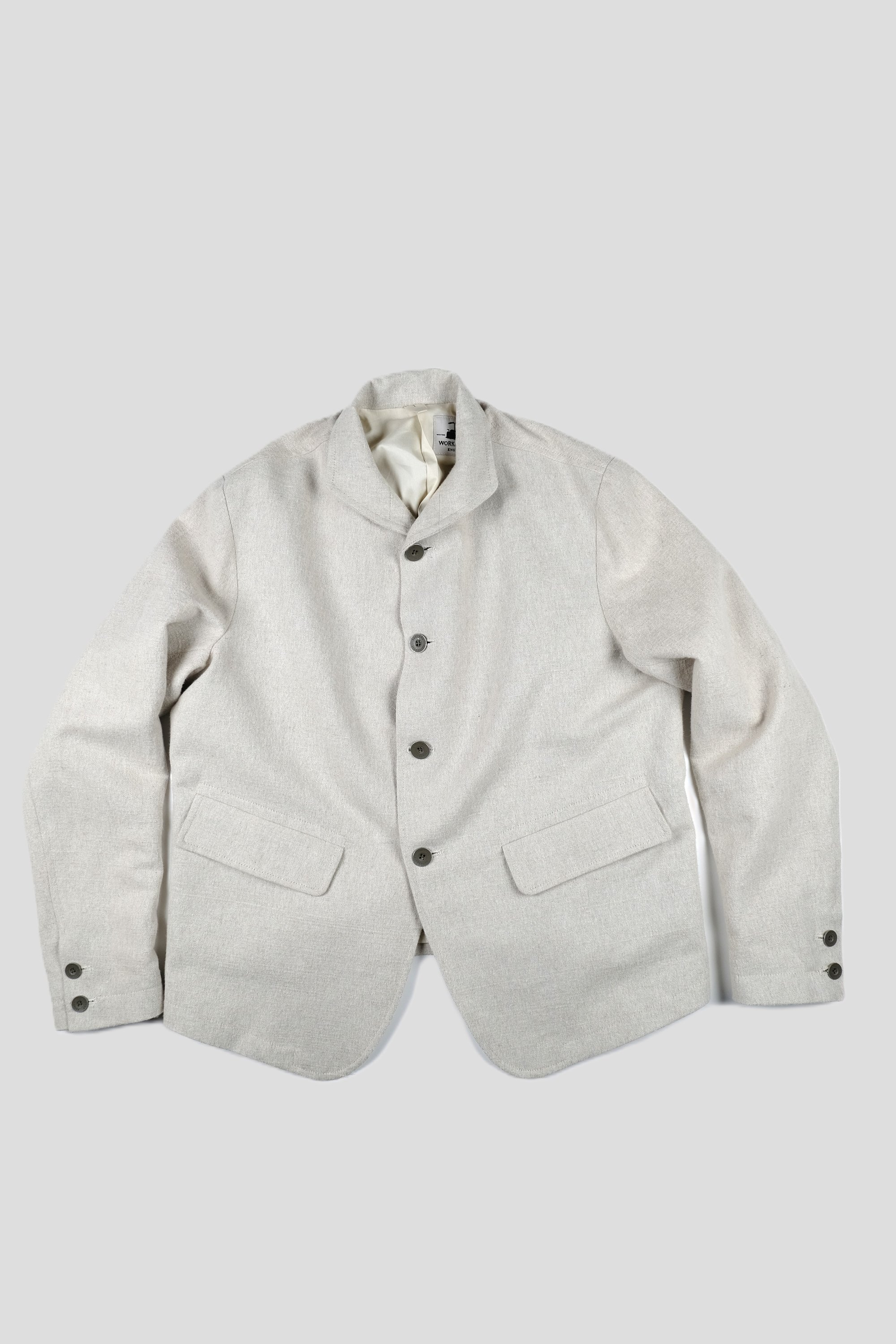 The Workhouse England Orbal Jacket is cut from a Medium weight linen.