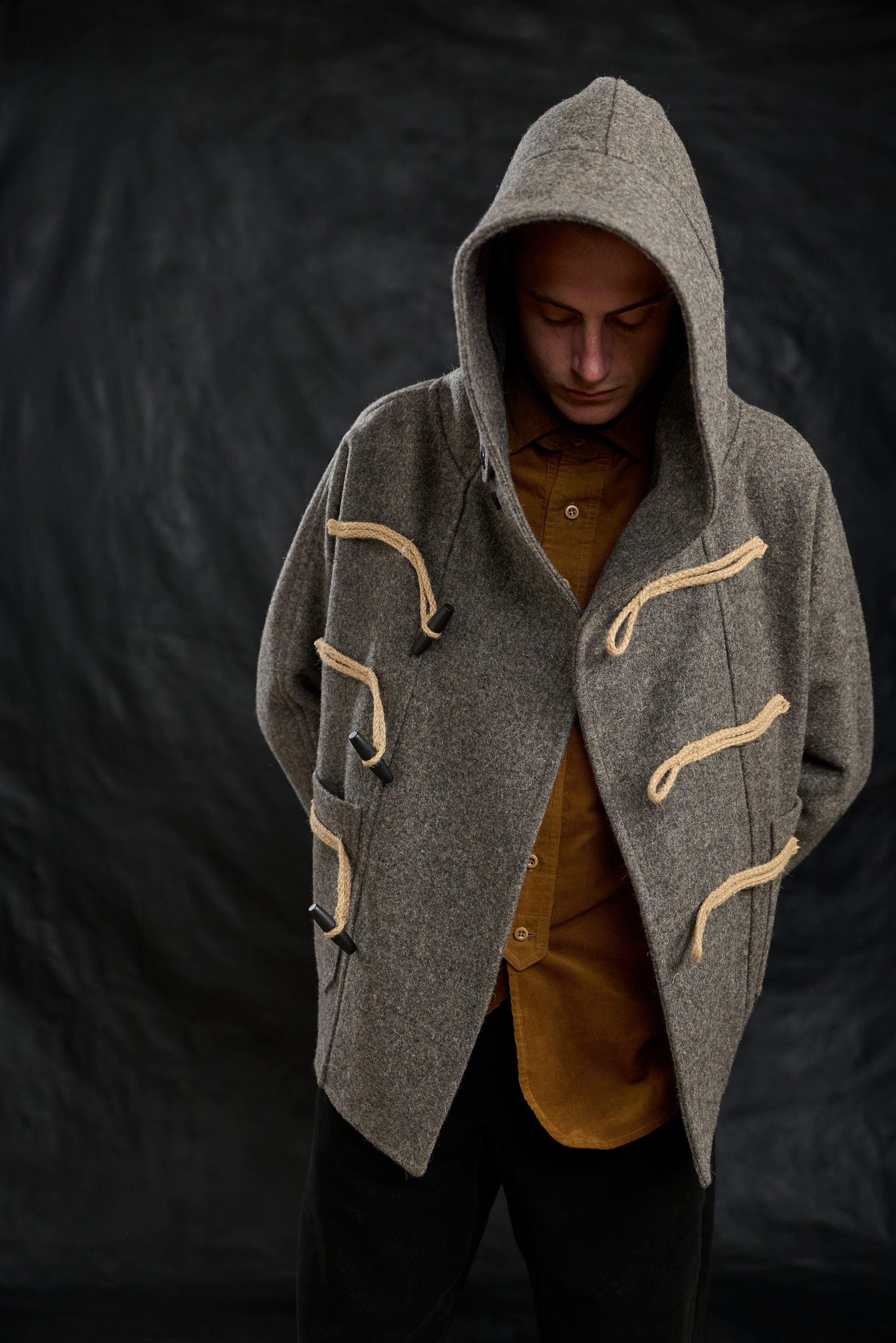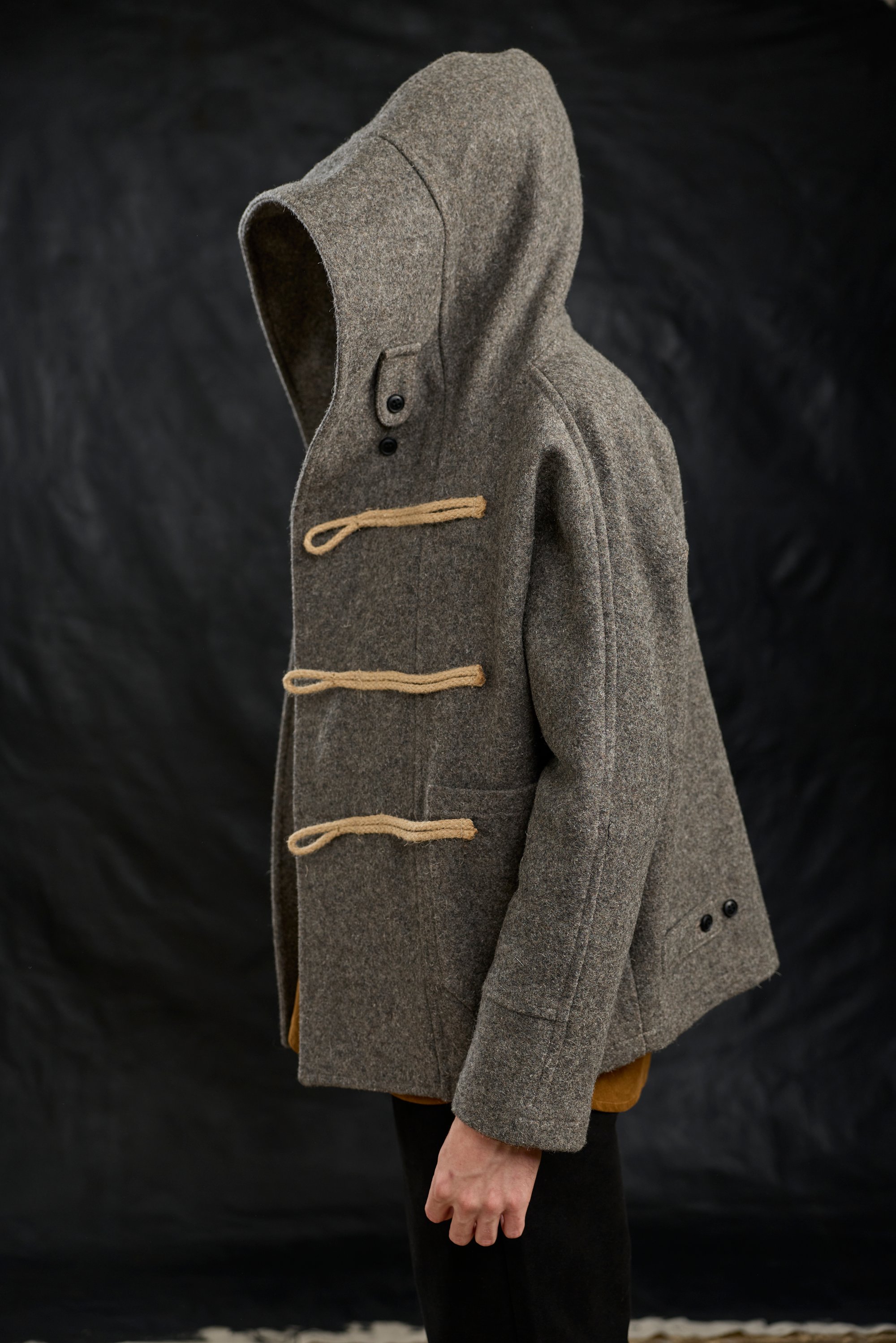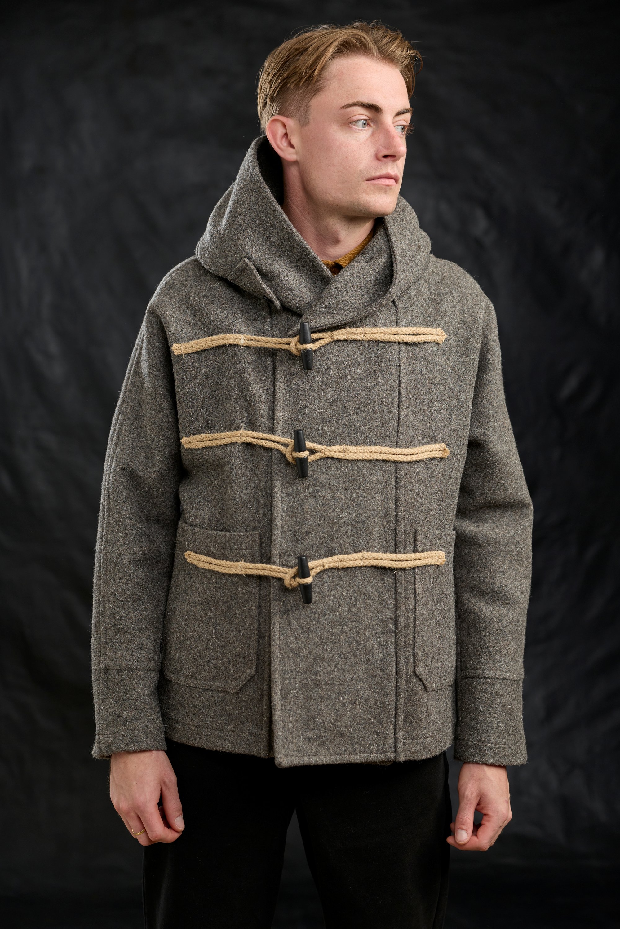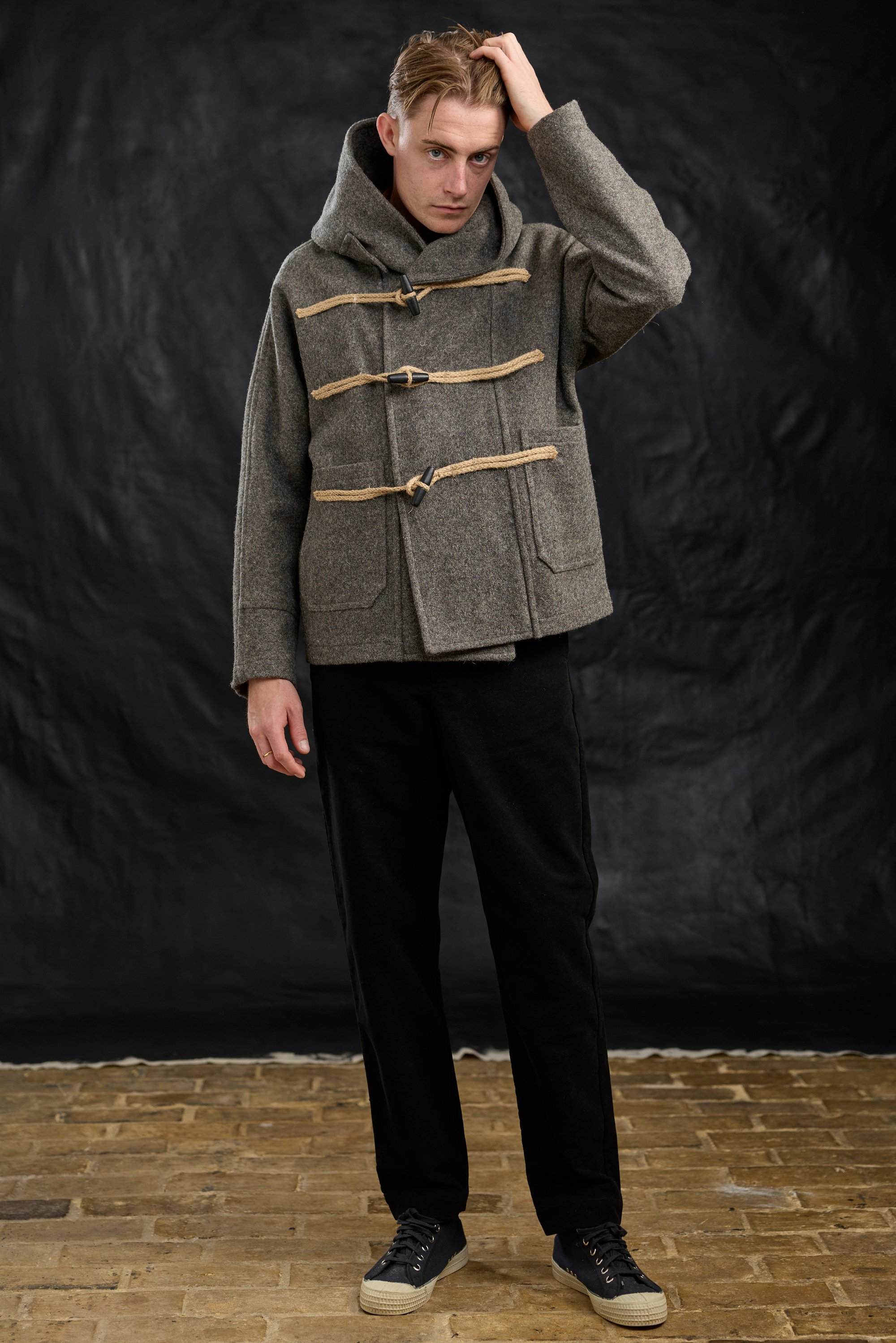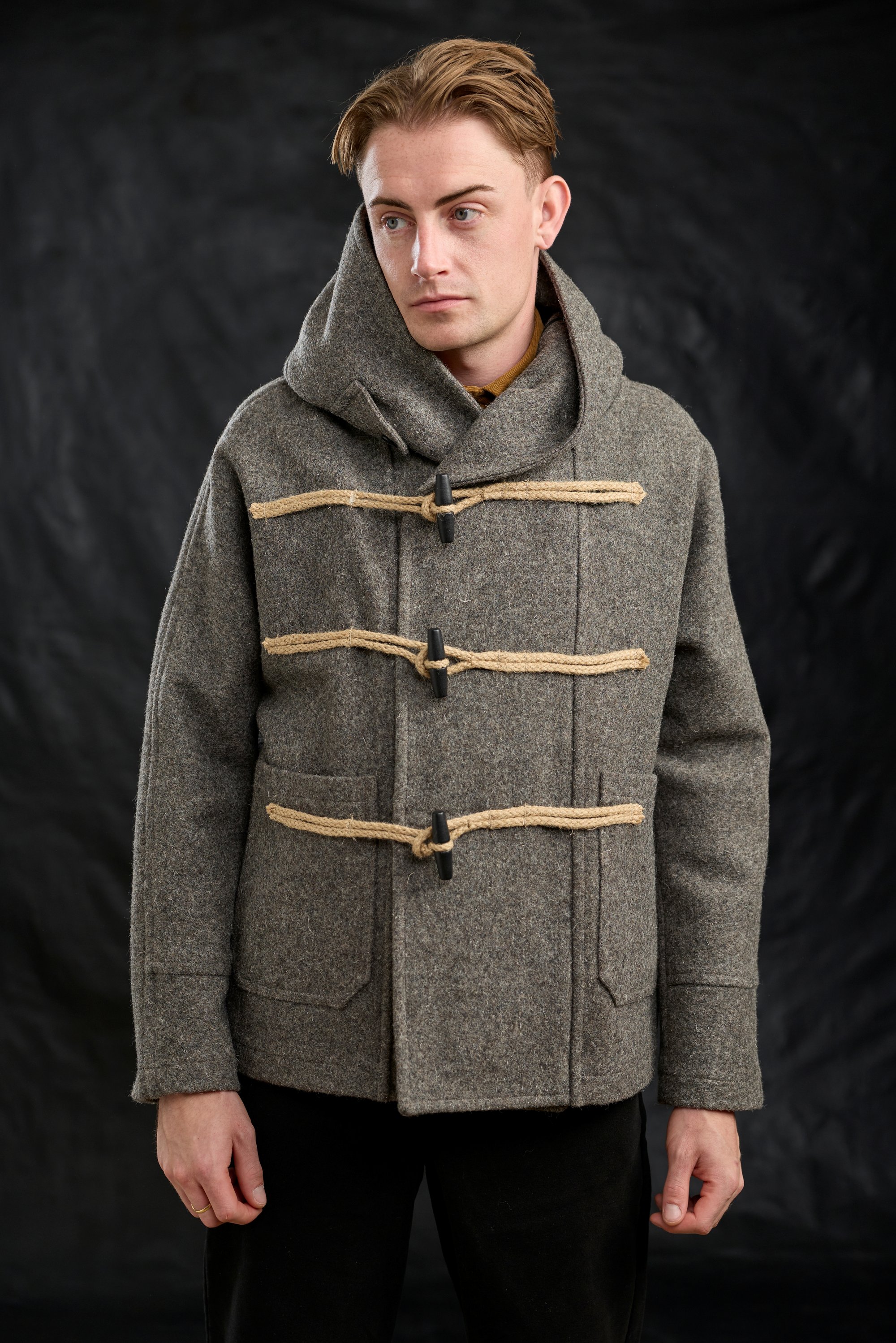 Fisherman wool Short TOGGLE Coat - Biscuit Grey £490.00