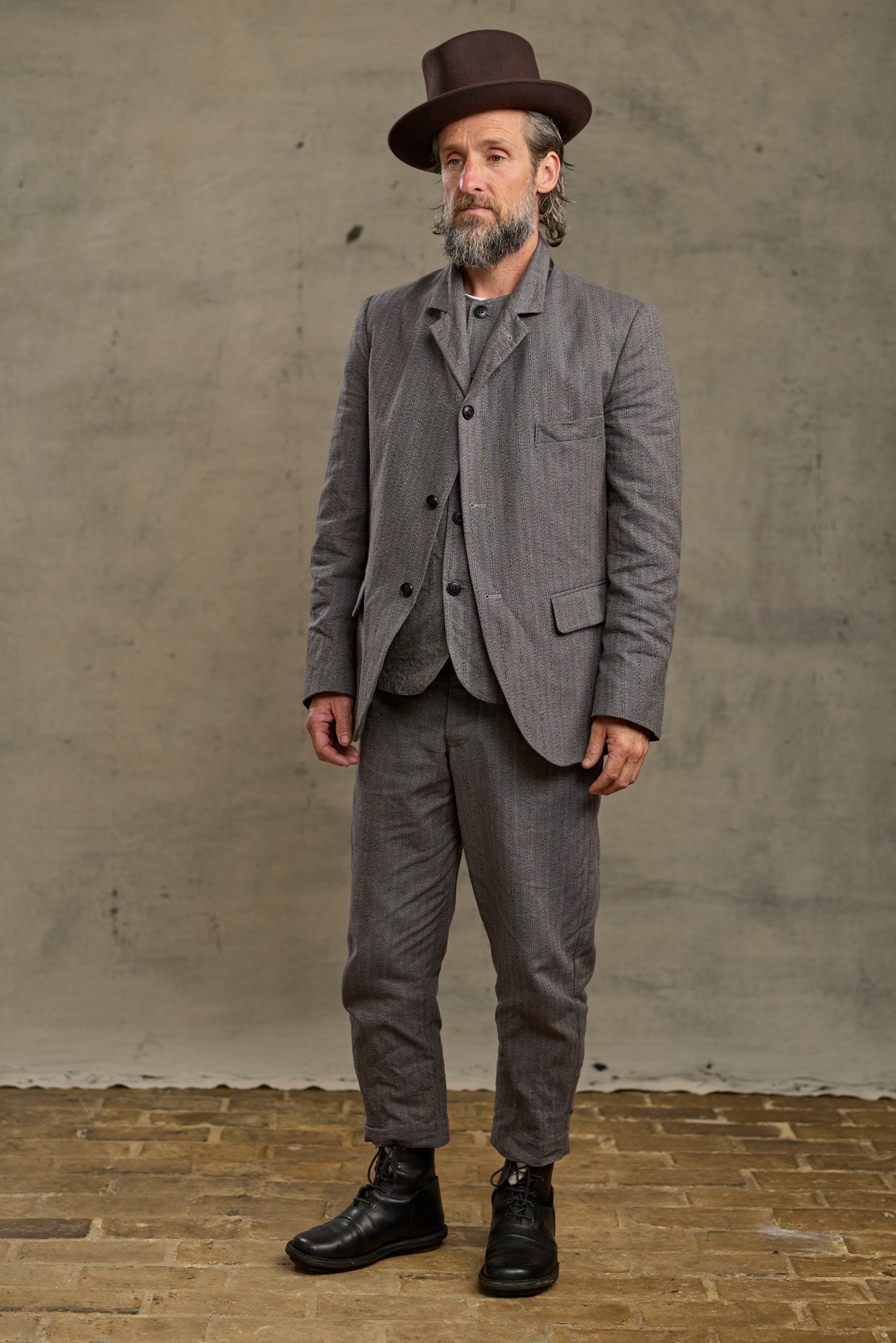 Made in Italian Grey stripe fabric, a great weight and handle and serves to be your everyday wardrobe.